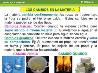 Todos los cuerpos están compuestos de materia a nivel atómico. La materia tiene propiedades generales como masa, volumen y temperatura, y propiedades específicas que varían entre sustancias como color, dureza y estado. Los tres estados de la materia (sólido, líquido y gas) tienen propiedades distintivas relacionadas a su estructura atómica.