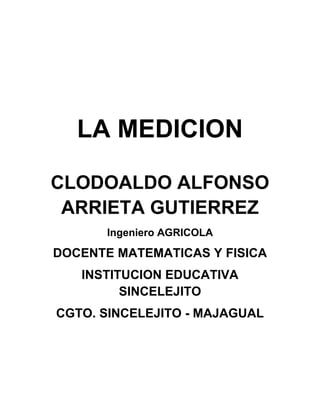 Este documento aborda la enseñanza de medición en matemáticas para estudiantes de sexto grado, enfocándose en la identificación de unidades de medida y su aplicación en situaciones cotidianas. Se detalla la importancia de entender y realizar mediciones utilizando tanto patrones arbitrarios como convencionales, junto a actividades y estrategias didácticas para facilitar el aprendizaje. Además, se incluye una discusión sobre la precisión y el error en las mediciones, así como la necesidad de utilizar unidades de medida estandarizadas.
