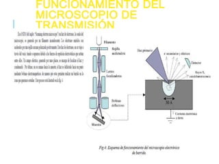 El documento describe los diferentes tipos de microscopios, sus componentes y cómo funcionan. Explica que existen microscopios ópticos simples y compuestos, de campo claro y oscuro, contraste de fases, fluorescencia, electrónicos de transmisión y barrido, y cuánticos. Cada tipo tiene características específicas que lo hacen útil para diferentes tipos de muestras y niveles de aumento requeridos.