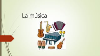 La música se define tradicionalmente como el arte de organizar sonidos y silencios de manera lógica y coherente utilizando la melodía, armonía y ritmo. La música es un producto cultural que busca provocar una experiencia estética en el oyente y expresar emociones. Los elementos fundamentales de la música son la melodía, armonía, ritmo y métrica. La música tiene diversas funciones en las culturas y beneficios psicológicos y neurológicos como mejorar la concentración y memoria.