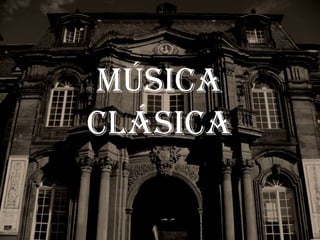 El documento resume la historia de la música clásica desde el Barroco hasta la actualidad, destacando compositores como Bach, Vivaldi, Haydn, Mozart, Tchaikovski, Beethoven, Debussy y Britten. Explora los periodos Barroco, Clásico, Romántico y Modernismo, caracterizando cada época y su evolución musical.