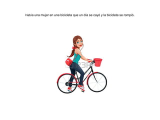 La historia trata de una mujer que se cayó de su bicicleta y la rompió. El autor repite la historia varias veces disminuyendo el tono de voz cada vez para asegurarse de que el lector lo entienda.