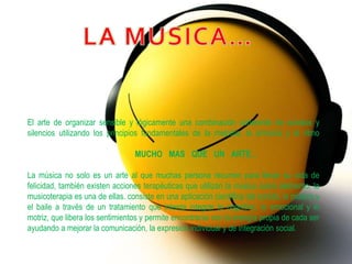felicidad, también existen acciones terapéuticas que utilizan la música como elemento, la