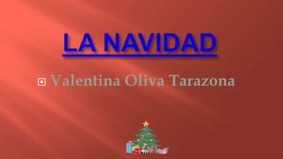 El documento explica el significado de la Navidad y algunos de sus símbolos. La Navidad conmemora el nacimiento de Jesucristo y se celebra el 25 de diciembre. El árbol de Navidad representa el árbol del Paraíso y la vida eterna, mientras que su forma triangular simboliza la Santísima Trinidad. Los muñecos de nieve son figuras hechas de nieve que se asocian popularmente con la Navidad y entretienen a los niños durante el invierno en lugares con abundante nieve.
