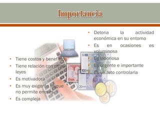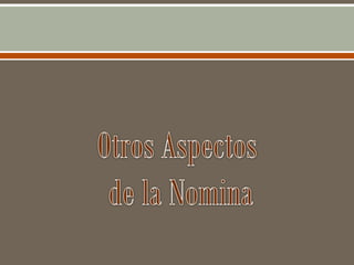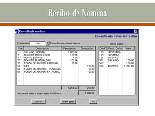 Este documento trata sobre la administración de sueldos y salarios. Explica que la nómina es el documento legal que refleja el salario de los trabajadores y contiene percepciones y deducciones. También describe el proceso de nómina, que incluye definir políticas de pago, establecer calendarios, calcular sueldos y realizar pagos. Finalmente, explica conceptos como salario mínimo, complementos salariales y normativa relacionada a la seguridad social.