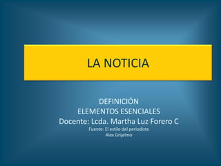 La noticia es el género periodístico por excelencia y la esencia del periodismo, originada por hechos de interés público recientes que pueden ser sorprendentes, paradójicos, estremecedores o trascendentales.