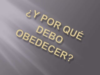 El documento describe diferentes tipos y niveles de obediencia, incluyendo la obediencia militar que implica estrictas sanciones por desobediencia debido a riesgos para la seguridad; la obediencia infantil que resulta de la integración familiar; y la obediencia religiosa que implica el sometimiento libre a la palabra de Dios garantizada por Él como la Verdad.