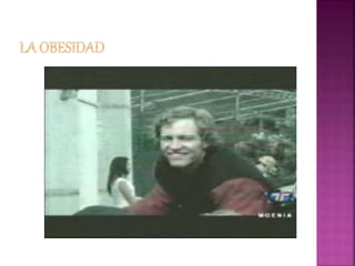 La obesidad es una condición resultante de la acumulación excesiva de grasa en el cuerpo, definida como un peso más de 20% superior al recomendado. Es causada principalmente por mala alimentación, falta de actividad física y factores hereditarios. Sus consecuencias incluyen diabetes, hipertensión, enfermedades cardiovasculares y problemas psicológicos. Existen diferentes tipos de obesidad según la distribución y morfología de la grasa corporal. Para prevenirla es importante controlar la ingesta de alimentos, realizar ej