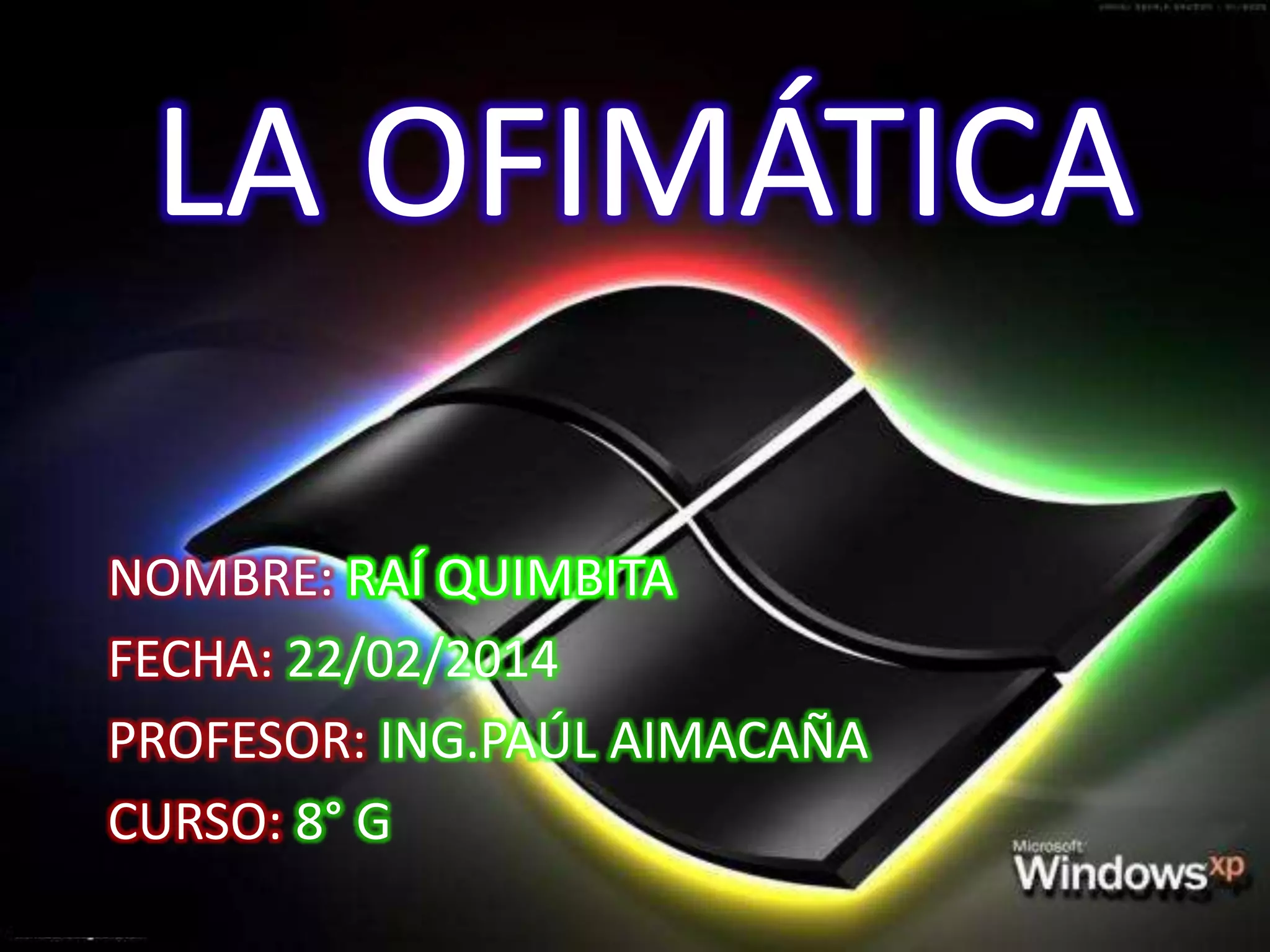 La ofimática se refiere al conjunto de técnicas y herramientas informáticas como Microsoft Office y OpenOffice.org que se utilizan para optimizar y automatizar tareas de oficina como la creación, manipulación, almacenamiento y transmisión de información. Algunas de las aplicaciones más comunes son hojas de cálculo, presentaciones y procesadores de texto que permiten realizar funciones de oficina de manera más eficiente.
