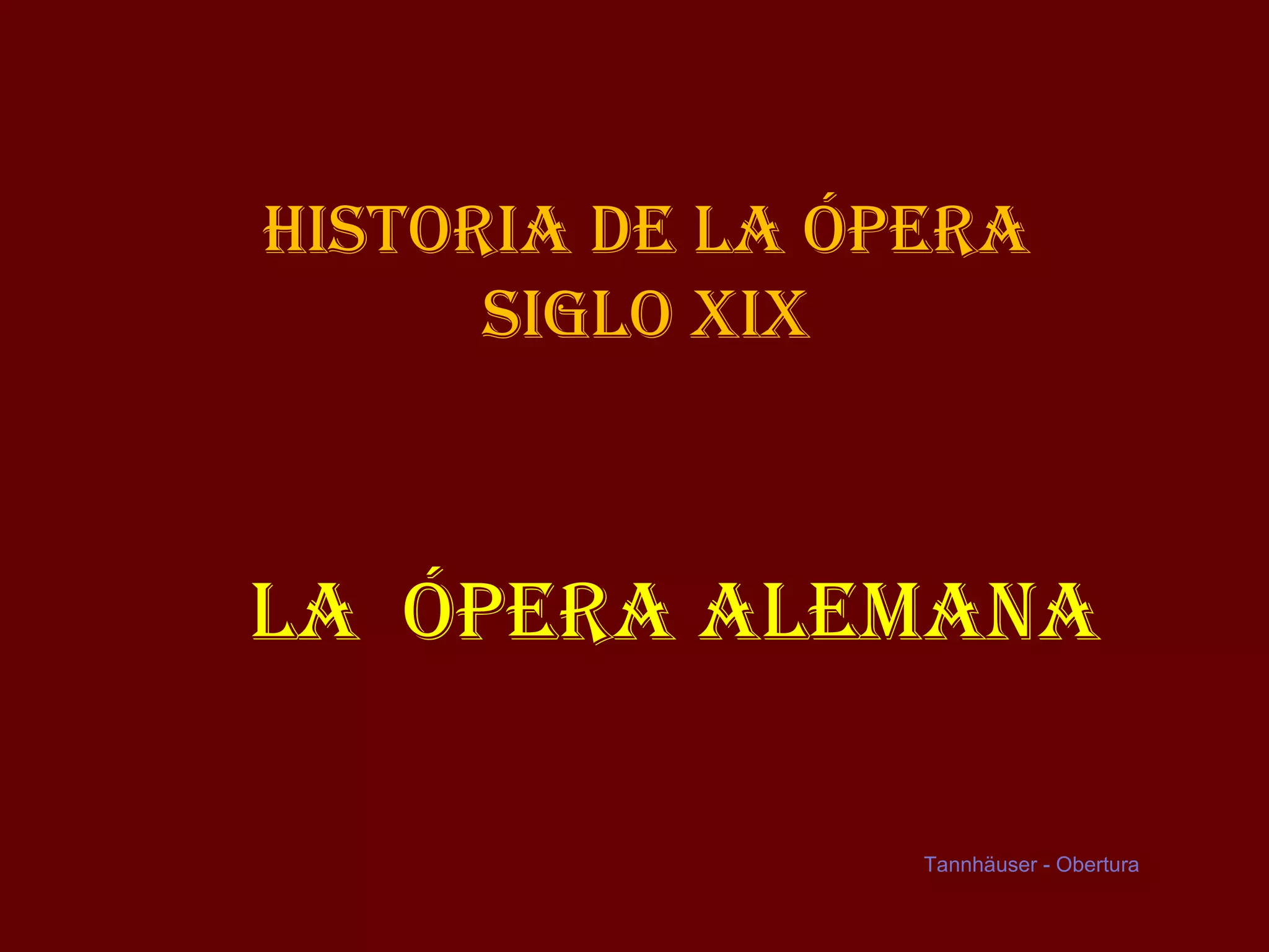El documento resume la historia de la ópera alemana en el siglo XIX. Explica que el Singspiel, con diálogos hablados en alemán, fue un primer paso hacia una ópera alemana auténtica. Compositores como Mozart, Beethoven y Weber contribuyeron al desarrollo del género. Incluye biografías de Weber, Meyerbeer y Wagner, destacando sus principales obras y su influencia en la creación de la ópera romántica alemana.