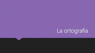 La ortografía establece las reglas de escritura de una lengua. La ortografía española ha sido codificada desde el siglo XVIII por la Real Academia Española, unificando las variaciones en las grafías. Actualmente, las 22 academias del español mantienen acuerdos para garantizar la unidad ortográfica en el idioma. Algunos aspectos problemáticos de la ortografía española incluyen las grafías con el mismo sonido y el uso correcto de signos de puntuación y acentuación.