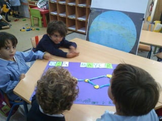Los estudiantes de 4 años en el Colegio Vara de Rey trabajaron en pequeños grupos para crear un dibujo de la constelación Osa Mayor en octubre de 2012. Con la ayuda de su maestra, los 4 miembros del grupo dibujaron la Osa Mayor en cartulina y pegaron bolas de plastilina en cada estrella y tiras de papel de seda para representar las líneas imaginarias entre las estrellas. El grupo sintió satisfacción al completar su trabajo.