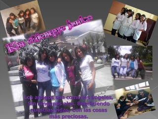 Este documento es una colección de frases cortas que expresan la amistad y cariño entre un grupo de amigas. Resalta que los amigos son como ángeles que bendicen la vida con cosas preciosas, y que a pesar de ser locas son amigas para siempre en las buenas y en las malas. Finaliza deseando una feliz Navidad y un próspero Año Nuevo para todas.