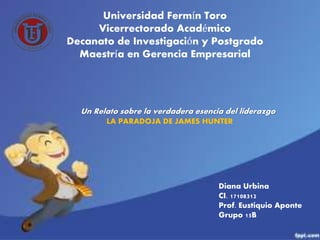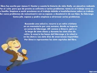 El documento resume los siete capítulos de un libro sobre el liderazgo. En el primer capítulo, se definen términos como liderazgo, arte, poder y autoridad. En el segundo capítulo, se discute el paradigma antiguo de la pirámide jerárquica y la necesidad de invertirla. El tercer capítulo describe el modelo de liderazgo de servicio con Jesús como el mayor ejemplo. Los capítulos restantes cubren temas como el amor, el entorno, la elección y los resultados del liderazgo. El documento conclu
