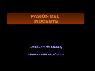 El documento resume los últimos momentos de Jesús antes de su crucifixión y muerte, según el Evangelio de Lucas. Jesús es traicionado por Judas con un beso, negado por Pedro, juzgado por el Sanedrín, Pilato y Herodes sin encontrar culpa, y finalmente crucificado entre dos ladrones, donde uno de ellos lo reconoce como el Mesías.