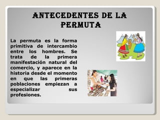 Este documento describe un contrato de permuta entre dos partes. La primera parte, Leiver de Jesús Colorado Gutiérrez, acuerda transferir una motocicleta marca AKT modelo 2006 a cambio de recibir un automóvil Mazda modelo 1986 de Luis Eduardo Giraldo Atehortua. Además, Colorado Gutiérrez pagará $2.600.000 a Giraldo Atehortua como compensación por la diferencia de valor entre los vehículos, estableciéndose las condiciones de pago. El contrato especifica detalles como la entrega de los