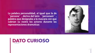 Este documento describe las teorías y conceptos clave de la personalidad. Define la personalidad como un esquema para comprender la conducta humana que surge de la interacción entre el temperamento y la socialización. Explica las diferencias entre el temperamento (base biológica) y el carácter (adquirido a través de la experiencia). Además, resume tres enfoques teóricos de la personalidad - personalista, situacionista e interaccionista - y varias teorías importantes dentro de cada enfoque como el psicoanálisis, los ras