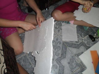 Este documento proporciona instrucciones paso a paso para elaborar una piñata de Bob Esponja utilizando icopor. Explica cómo dibujar y recortar las formas de Bob Esponja en icopor, pintarlas con los colores apropiados, y luego ensamblar las piezas usando silicona para crear la figura de Bob Esponja rellena de dulces.
