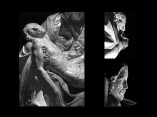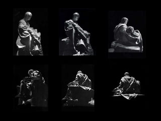 El documento describe una exposición fotográfica de Robert Hupka de cientos de fotografías en blanco y negro de la escultura La Piedad de Miguel Ángel tomadas durante toda una noche con permiso especial. La exposición tuvo lugar en un entorno íntimo y contemplativo en la Capilla del Obispo con música gregoriana. El autor visitó la exposición varias veces y quedó profundamente conmovido por la belleza que desprendían las fotografías. Ahora ha creado una presentación siguiendo el criterio de la exposición