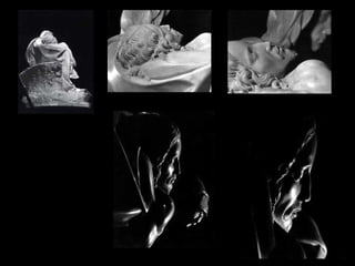 El documento describe una exposición de más de 100 fotografías en blanco y negro de La Piedad de Miguel Ángel tomadas por el fotógrafo Robert Hupka. Hupka tomó cientos de fotos de La Piedad desde todos los ángulos posibles con permiso de fotografiarla durante toda una noche. La exposición tuvo lugar en una capilla en semipenumbra con música gregoriana. Cuando se le preguntó sobre contemplar La Piedad, Hupka respondió que por primera vez en su vida se encontró ante la verdadera grandeza.