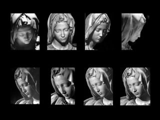 El documento describe una exposición fotográfica de Robert Hupka de cientos de fotografías en blanco y negro de la escultura La Piedad de Miguel Ángel. El autor asistió varias veces a la exposición, que tuvo lugar en un entorno íntimo y contemplativo con música gregoriana. El autor ahora ha creado una presentación siguiendo el estilo de la exposición original para compartir las fotografías y la experiencia que le conmovió profundamente.