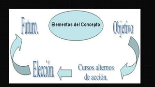 Este documento describe la planeación como el método mediante el cual los administradores ven hacia el futuro para descubrir alternativas y establecer objetivos. Explica que la planeación genera compromiso, permite evaluar alternativas, establece un sistema racional para la toma de decisiones y reduce la incertidumbre. Identifica los elementos clave de la planeación como propósitos, objetivos, investigación, presupuesto, políticas y estrategias. Además, distingue entre la planeación estratégica a largo plazo, la planeación táctica a