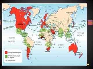 La población mundial sigue creciendo y está distribuida de forma desigual. Los principales factores que afectan la distribución de la población son los factores físicos, históricos y económicos. Las fuentes demográficas como los censos y padrones proporcionan información sobre la población de un país. La población cambia debido a los movimientos naturales como nacimientos y defunciones, y a los movimientos migratorios.