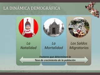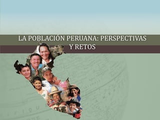 Este documento discute las perspectivas y retos de la población peruana. Explica que la población peruana está envejeciendo y que habrá un aumento en la brecha entre las tasas de natalidad y mortalidad en los próximos 15 años. También analiza las diferencias entre áreas urbanas y rurales en términos de migración, fecundidad y mortalidad infantil. Además, examina cómo los factores demográficos afectarán las tendencias del mercado laboral con respecto a la oferta laboral, el desemple