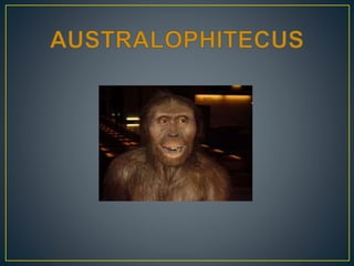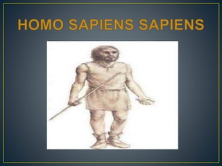 El documento resume diferentes especies del género Homo que habitaron la Tierra a lo largo de la evolución humana, incluyendo australopitecos, Homo habilis, Homo neanderthalensis, Homo antecessor y Homo sapiens anatómicamente moderno. Describe algunas de sus características físicas y su distribución geográfica y temporal, destacando que los australopitecos jugaron un papel esencial en la evolución al ser precursores del género Homo, y que los humanos anató