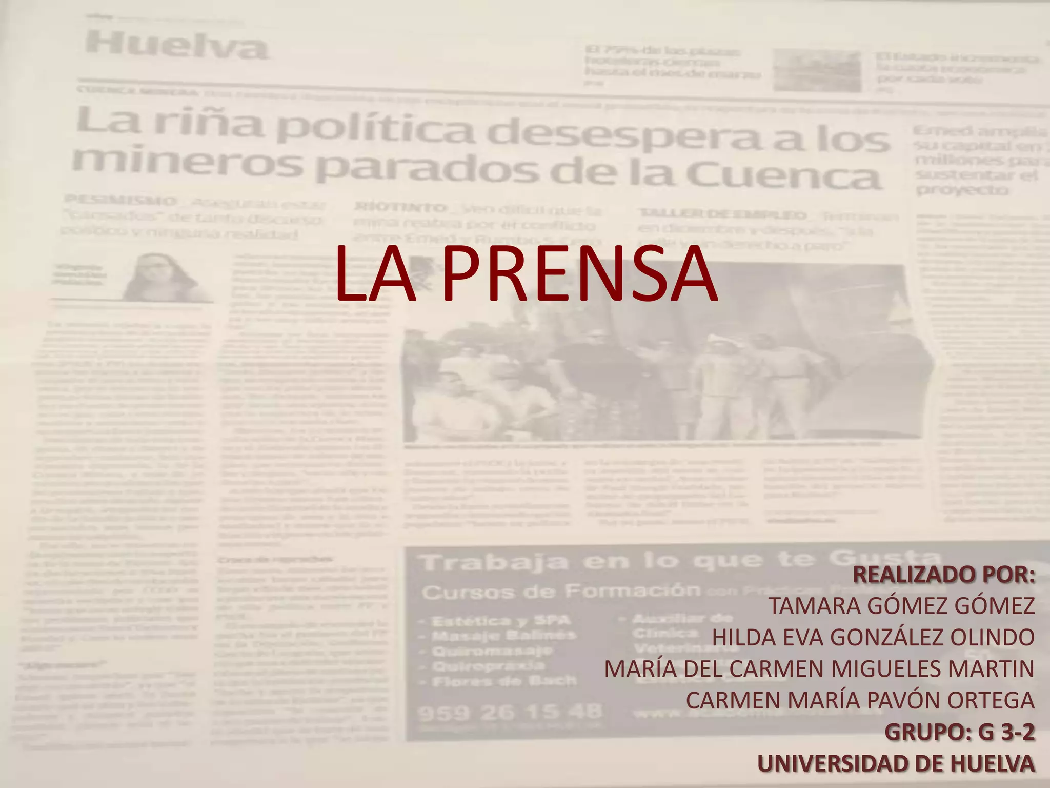 Este documento resume varios aspectos de la prensa como la crítica periodística, el periodismo especializado, la función social de los periodistas y el uso de imágenes. La crítica periodística informa y orienta a los lectores de forma breve y argumentada sobre acontecimientos culturales. El periodismo especializado es realizado por periodistas con conocimientos específicos en un área y compite con otros medios. Los periodistas deben cumplir normas como verificar la información y respetar la privacidad de las personas. Las imágenes sintetiz
