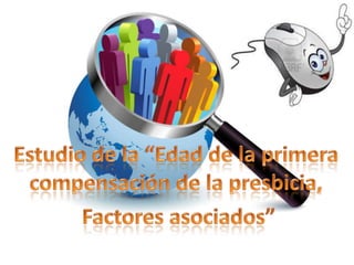 1) Un estudio sobre factores asociados a la edad de aparición de la presbicia (AAP), encontrando que la edad promedio era 48.28 años e identificando la profesión y tamaño de pupila como factores relevantes.