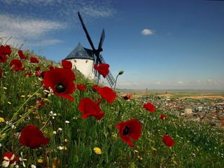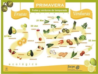 Este documento presenta algunas de las flores y árboles característicos de la primavera, incluyendo la amapola, aguileña, boca de dragón, cantueso, flor de abeja, varillas de san José, jara pringosa, narciso, peonia y lila. También menciona árboles como el cerezo, ciruelo, melocotonero, membrillo y peral, que florecen en esta estación.