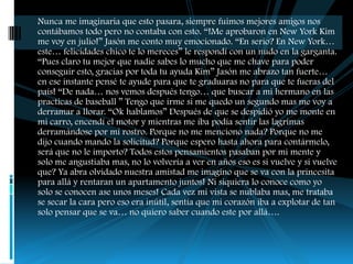El documento narra la historia de Kim, una joven que se da cuenta de que está enamorada de su mejor amigo Jasón. Sin embargo, Jasón se va a mudar a Nueva York para estudiar. Kim se entera de la noticia por Jasón y queda devastada, pues no podrá verlo durante años. Tras hablar con su amiga Lucila, Kim se da cuenta de que está enamorada de Jasón. Pasan sus últimos días juntos disfrutando el uno del otro antes de que Jasón se mude.