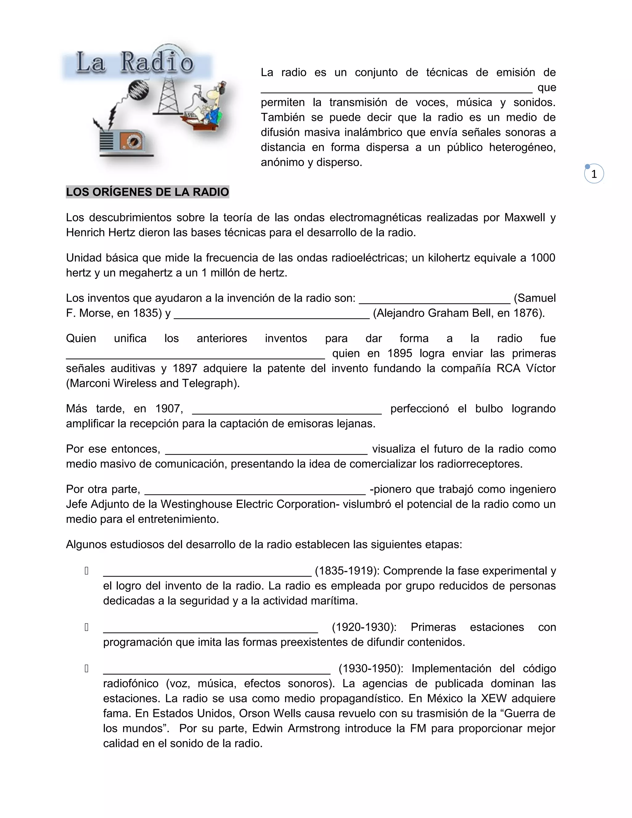El documento resume la historia y situación actual de la radio en México. Comenzó como un medio experimental a principios del siglo XX y ahora es un negocio dominado por grandes cadenas comerciales que se enfocan principalmente en música y publicidad, con poca programación cultural o de servicio público. La radio sigue siendo un medio importante para la comunicación de masas en México a pesar de la competencia de otros medios.