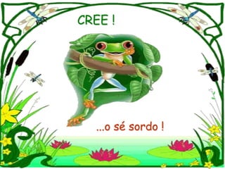 El documento cuenta la historia de una carrera de ranas donde la mayoría renunciaron debido a los gritos negativos de los espectadores diciendo que no podrían lograrlo. La única rana que continuó era sorda y no podía escuchar los comentarios negativos, por lo que logró ganar la carrera. El mensaje principal es que debemos ser positivos y no dejarnos afectar por comentarios negativos de otros, creyendo en nosotros mismos.
