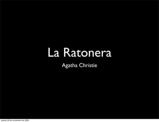 La historia se desarrolla en Monkswell Manor, una casa de huéspedes a las afueras de Londres. Un grupo de inquietantes inquilinos se reúne allí una noche de invierno, incluyendo a Christopher Wren, Mrs. Boyle, Mayor Metcalf, Miss Casewell y Mr. Paravicini. El Sargento Trotter llega para advertirles que uno de ellos puede estar relacionado a un crimen en Londres. Atrapados por la nieve, los huéspedes comienzan a sospechar unos de otros a medida que las pist