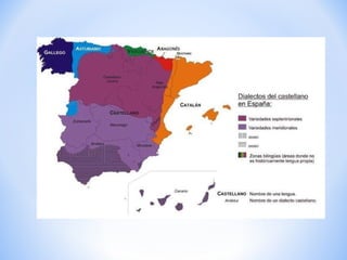 El documento describe la evolución de las lenguas romances en la Península Ibérica desde la romanización hasta la actualidad. Los pueblos prerromanos hablaban diferentes lenguas como el celta y el íbero que desaparecieron con la llegada del latín durante el Imperio Romano. Las invasiones germánicas y árabes influyeron en los dialectos latinos que dieron lugar a las lenguas romances peninsulares como el gallego, castellano, portugués y catalán.