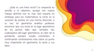 Este documento describe los diferentes tipos de rectas en el sistema diédrico ortogonal y cómo se representan y determinan sus características. Explica que una recta se define como una sucesión de puntos y que dos puntos determinan una recta. Luego detalla los diferentes tipos de rectas según si son paralelas o perpendiculares a los planos de proyección, y cómo se representan y calculan sus trazas y ángulo con los planos de proyección. Finalmente, explica cómo determinar la longitud verdadera de una recta.