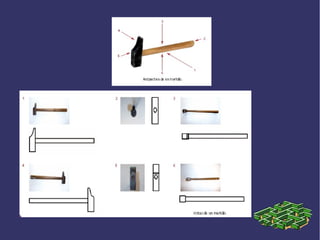 Este documento describe los diferentes métodos para representar objetos en dibujos técnicos, incluyendo vistas, perspectivas y el uso de escalas. Explica que las vistas principales de un objeto son el alzado, la planta y el perfil, y que la perspectiva muestra las tres dimensiones de un objeto de una manera más realista. También cubre cómo dibujar objetos a diferentes escalas para ajustarlos al tamaño del papel.
