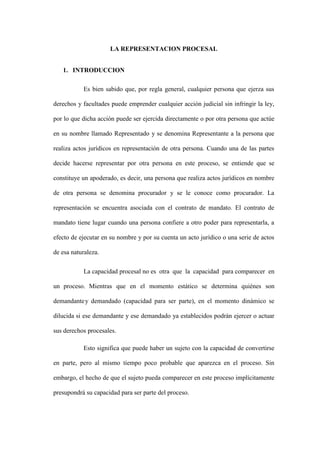 1. El documento informa sobre un informe sobre la representación procesal.