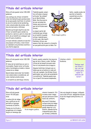 Este documento es el primer boletín informativo de la Revista Digital del CEIP "Virgen de la Candelaria" en Colmenar. El boletín da la bienvenida a los lectores y proporciona noticias breves sobre el colegio. Contiene varios artículos cortos sobre temas como el uso de boletines para promocionar una organización y la inclusión de imágenes. El boletín también incluye información de contacto sobre el colegio.