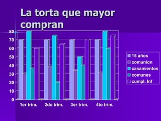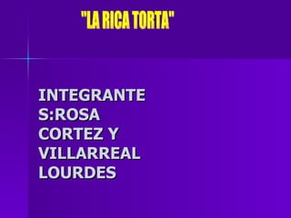 El documento describe el negocio de tortas "La Rica Torta" propiedad de Rosa Cortez y Lourdes Villarreal. Ofrecen tortas deliciosas y caseras a precios competitivos. Su local no tiene competencia cercana y pueden entregar pedidos a domicilio. Esperan obtener más clientes en el barrio y alrededores si ofrecen buena calidad y servicio.