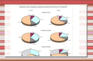 La Rioja tiene tres sectores económicos principales: el sector primario basado en la agricultura y ganadería, especialmente la vid y horticultura; el sector secundario con industrias alimentarias como bodegas y conservas, además de pequeñas fábricas; y el sector terciario donde el turismo, especialmente el relacionado con el vino, tiene gran importancia. La cultura y economía de La Rioja gira en gran medida en torno a la vid y el vino.