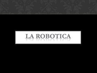 La robótica se dedica al diseño, construcción y aplicación de robots. Combina disciplinas como mecánica, electrónica e inteligencia artificial. Los robots industriales son manipuladores programables que mueven materiales y herramientas. Se espera que en el futuro los robots tengan capacidades más similares a las humanas. Actualmente, los robots se utilizan en aplicaciones como industria automotriz, salones de clase y transbordadores espaciales.