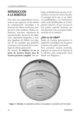 1) El documento introduce conceptos fundamentales sobre robots, incluyendo definiciones, tipos y unidades básicas de un robot. 2) Explica que un robot es un dispositivo con cierto grado de movilidad que puede realizar tareas de forma independiente y adaptarse al entorno. 3) Describe los principales tipos de robots según su uso e incluye ejemplos como robots industriales, domésticos, médicos y agrícolas.