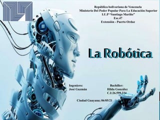 La robótica estudia el diseño, construcción y aplicación de robots. Los robots se usan actualmente en la industria, laboratorios, agricultura e investigación espacial para realizar tareas peligrosas, repetitivas o difíciles para los humanos. Aunque los robots actuales tienen capacidades limitadas, la inteligencia artificial los mejorará para que colaboren más efectivamente con las personas en el futuro.