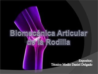 La rodilla es la articulación más grande del cuerpo y está compuesta por los huesos del fémur, tibia y rótula. Contiene ligamentos, meniscos, músculos y nervios que le dan estabilidad y permiten movimientos de flexión, extensión y rotación. La anatomía de la rodilla y sus estructuras son descritas en detalle en el documento.