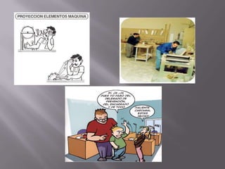 Este documento trata sobre la seguridad industrial y la prevención de accidentes laborales. Explica que la seguridad industrial tiene como objetivo proteger a los trabajadores de riesgos de accidentes a través del análisis de factores humanos, la implementación de programas de prevención, y la inspección continua de las áreas de trabajo. También describe cómo prevenir específicamente accidentes como resbalones y caídas, accidentes eléctricos, y accidentes con máquinas a través de medidas como el orden, la iluminación, protecciones eléct