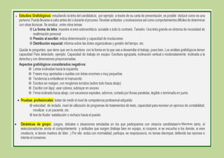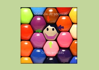 Este documento proporciona información sobre el proceso de selección de personal, incluyendo ejemplos de diferentes tipos de pruebas y exámenes que se utilizan, como exámenes de conocimientos, aptitudes intelectuales y tests de personalidad. También incluye enlaces a páginas web donde se pueden encontrar tests adicionales de forma gratuita para practicar y prepararse para el proceso de selección.