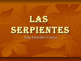 El documento describe las características y tipos de serpientes. Las serpientes son reptiles de sangre fría que se alimentan de roedores, ranas y aves pequeñas. Hay tres tipos principales: estranguladoras, venenosas y acuáticas. El documento también describe algunas serpientes específicas como la cobra, la anaconda verde y las serpientes venenosas que se encuentran en España.